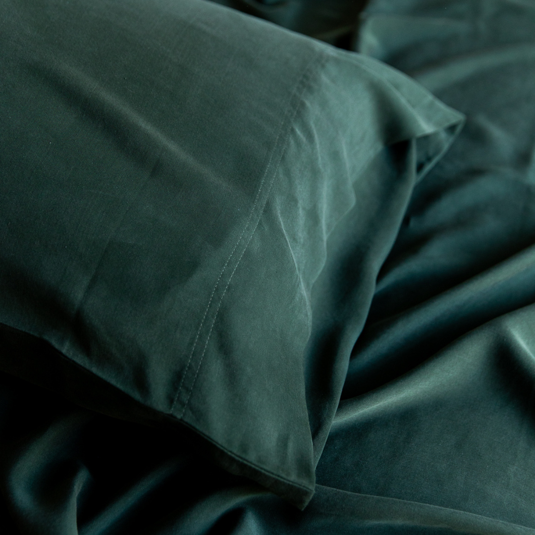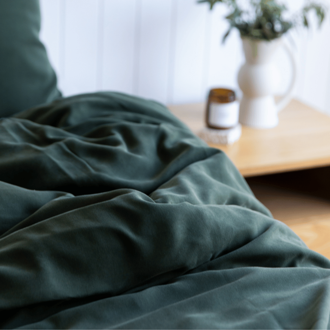 Organic Bamboo Stone Washed Quilt Cover Set - Forest Green
