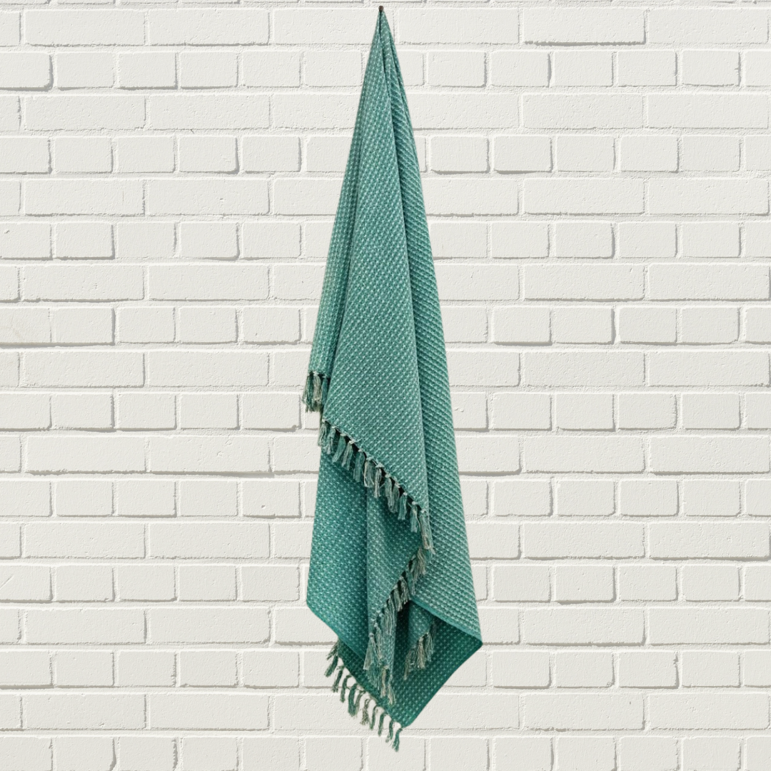 The New Cosy Spring/Summer Essential, the lovely and super soft Miran Cotton Blanket in Light Blue. Perfect addition to the end of your bed for a light layer when the nights are cool, or a cosy companion on the couch.