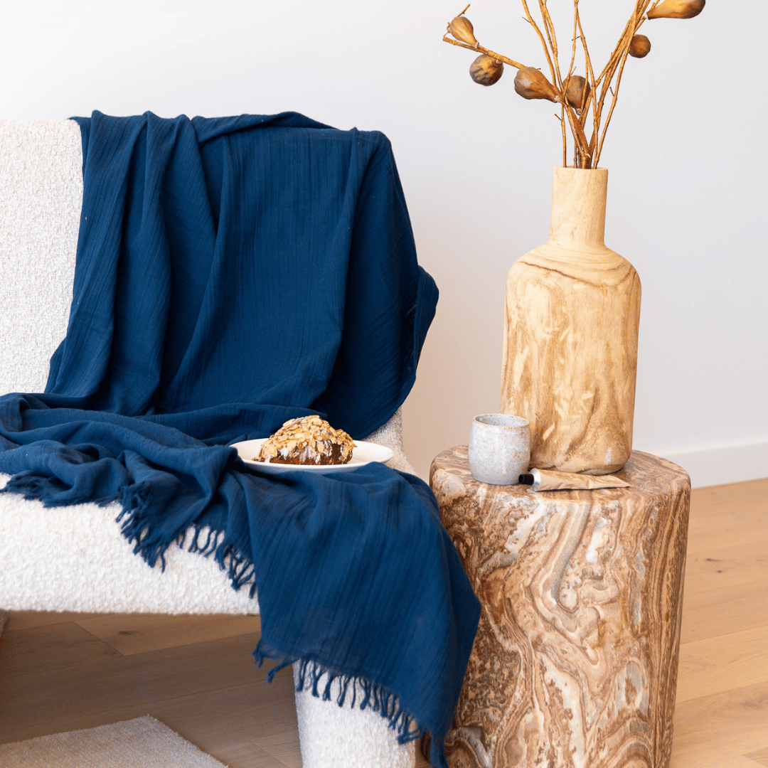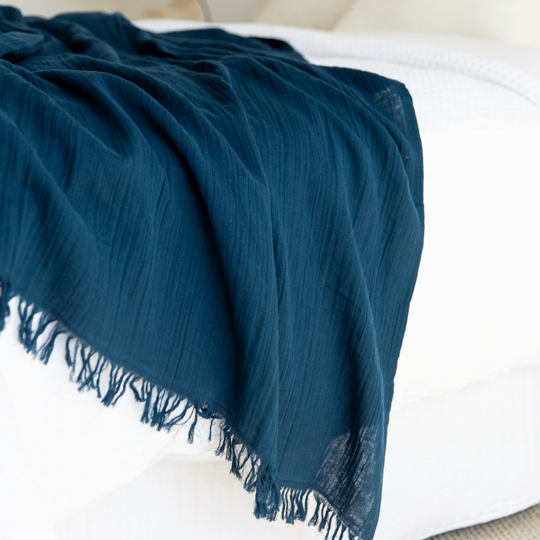 The New Stone Washed Cotton Throw in Navy is the latest addition to our Spring/Summer Blanket and Throw Collection. Featuring this gorgeous Cotton Fabrication which has been Stone Washed to create the unique colour.