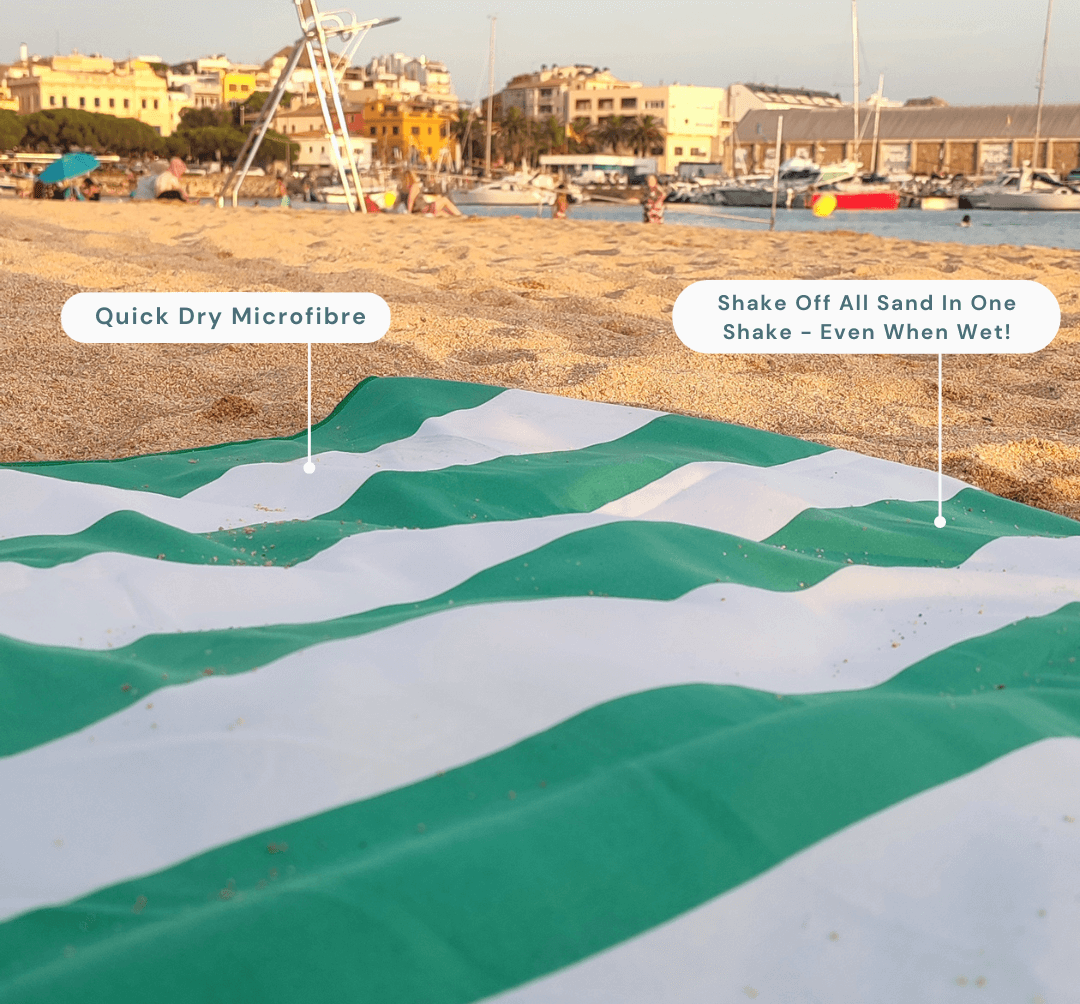 The newest addition to our Spring/Summer Collection, the Green on Green Stripe Sand-Free Towel for Two is an extra large blanket with so many purposes.