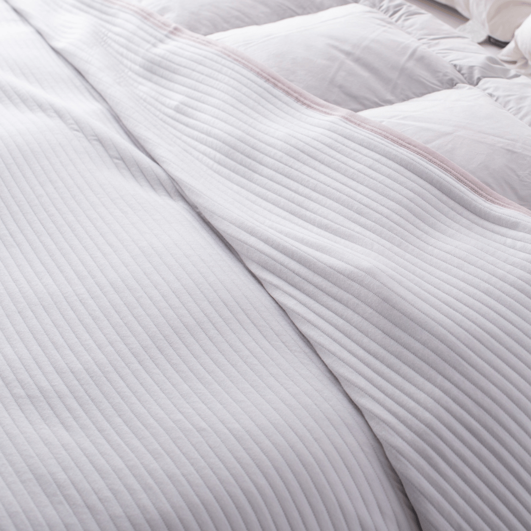 This Super Soft Jacquard Triple Layer Bamboo Cotton Jersey Blanket provides comfort and style with the ribbed texture and contrasting piping. Gorgeous styled in the bedroom or on the couch.