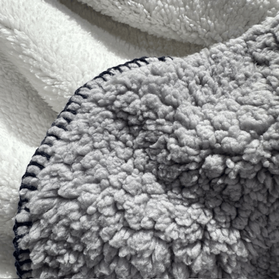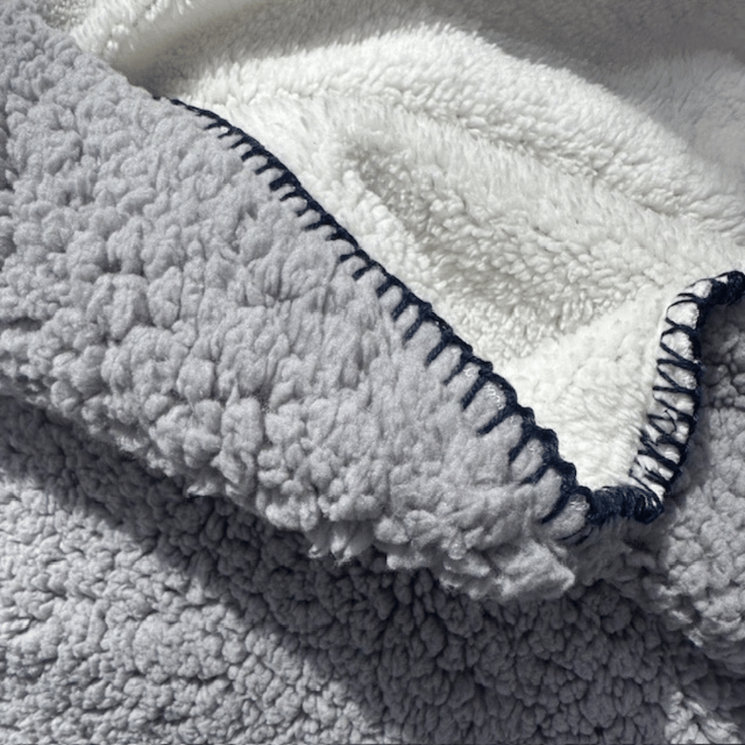 Wrap yourself in next-level comfort with our new cosy Hudson Sherpa Blanket. Designed as fully reversible, it features Plush Grey Sherpa on one side and Soft White Sherpa fabrication on the other — giving you two timeless looks in one. Finished with Navy feature stitching as an elevated detail, it’s the perfect blend of warmth, texture and style for any bedroom or living space.