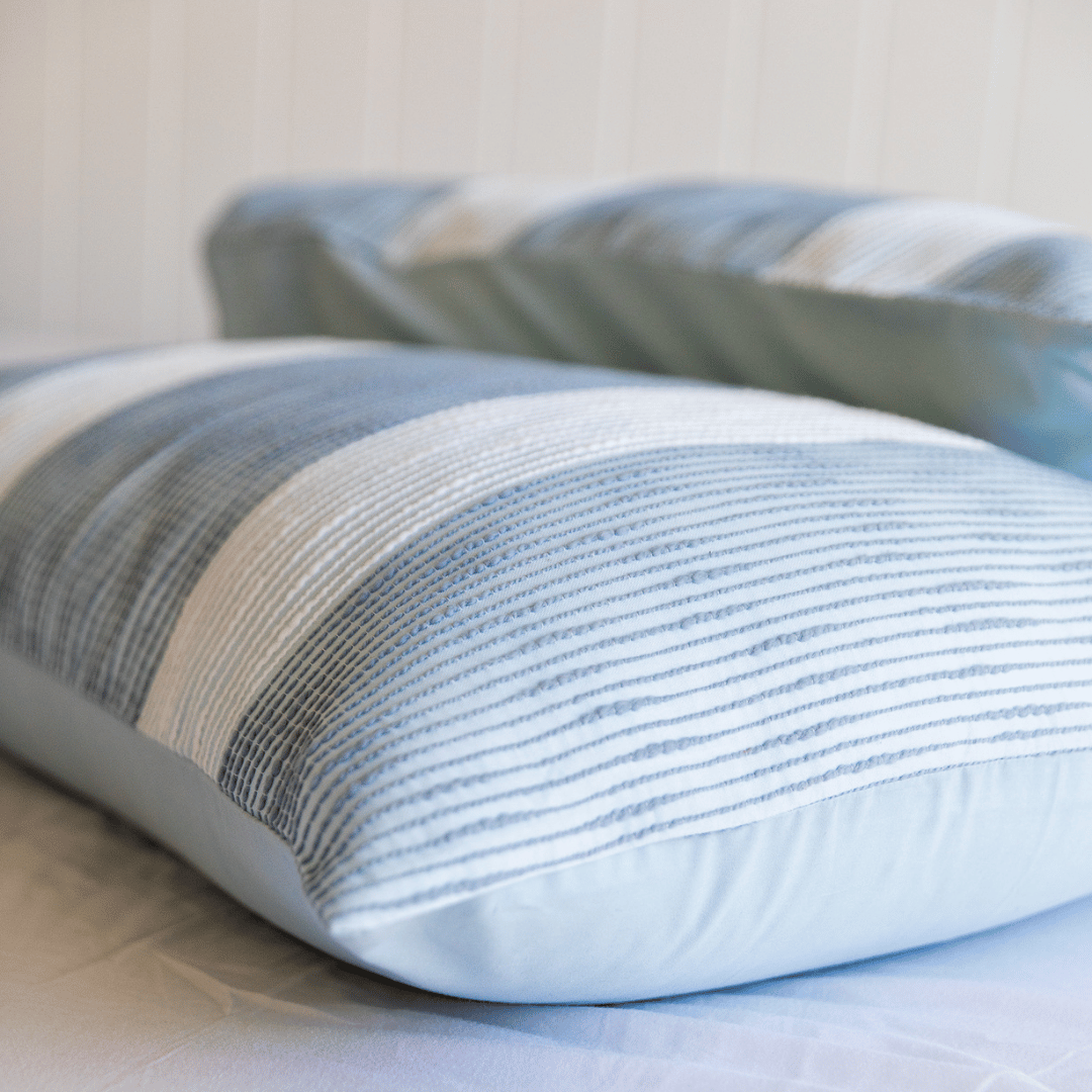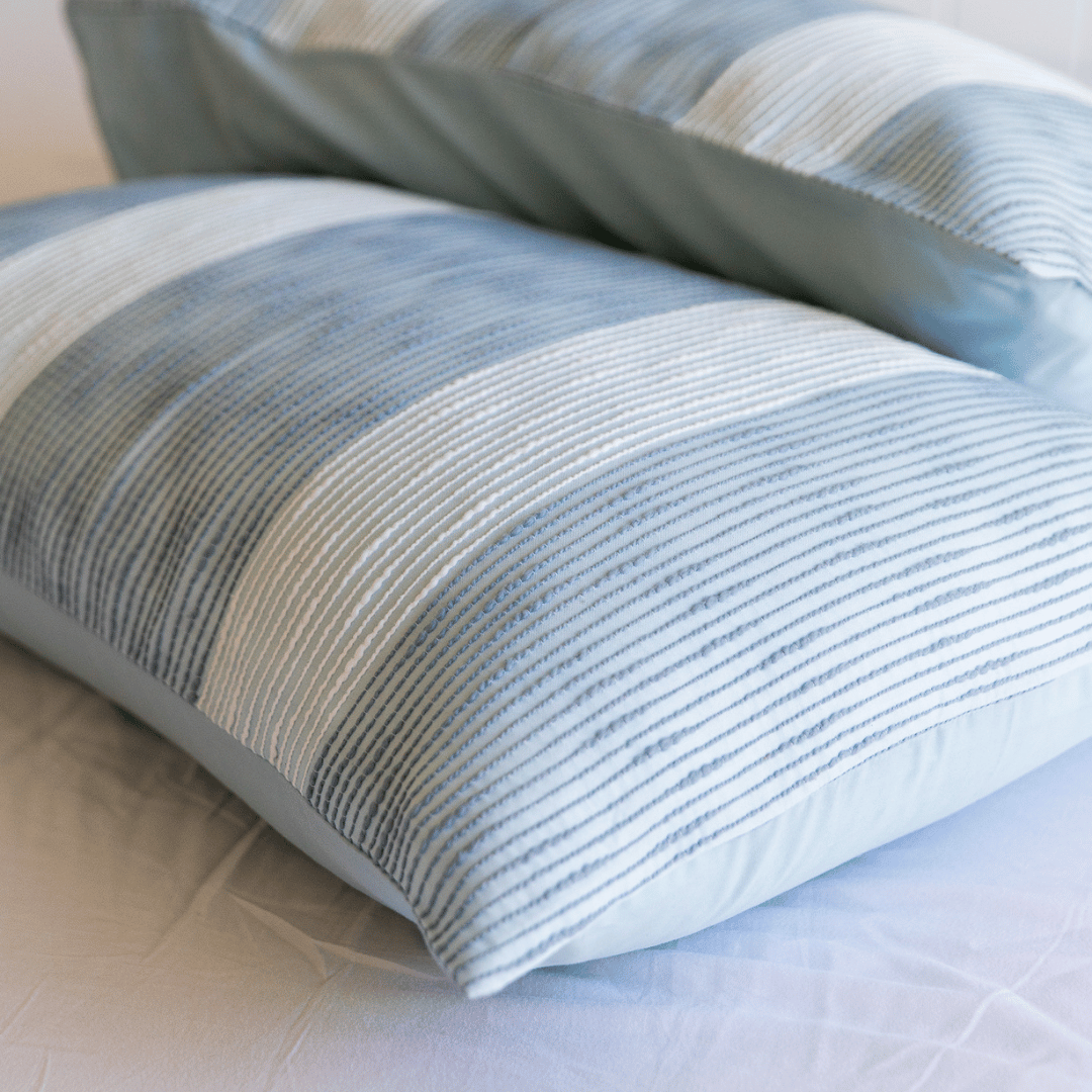 The New Loome Quilt Cover Set offers the perfect balance between texture and comfort. Featuring a textured panel design of light blue tones with contrasting piping, this new design adds Spring/Summer vibes to your home.