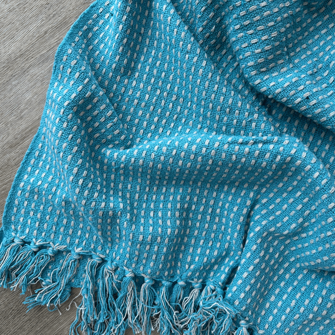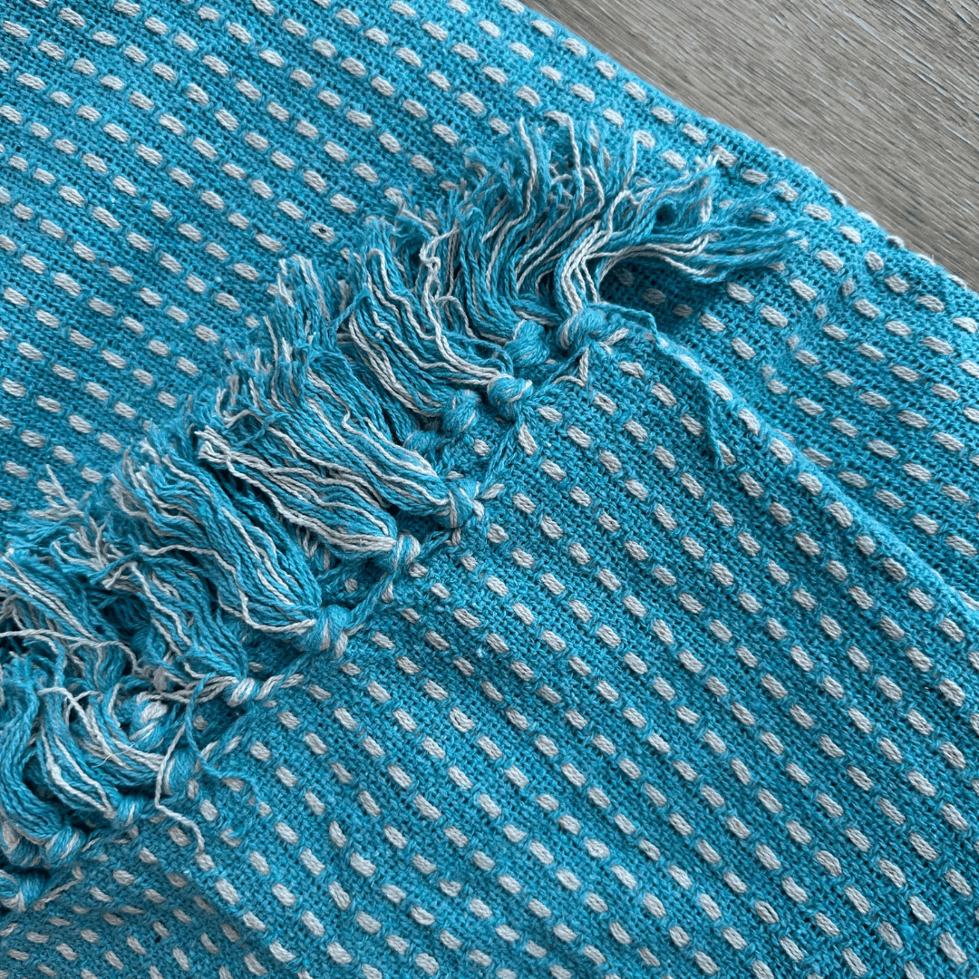The New Cosy Spring/Summer Essential, the lovely, soft Miran Cotton Blanket in Light Blue. Perfect addition to the end of your bed for a light layer when the nights are cool, or a cosy companion on the couch.
