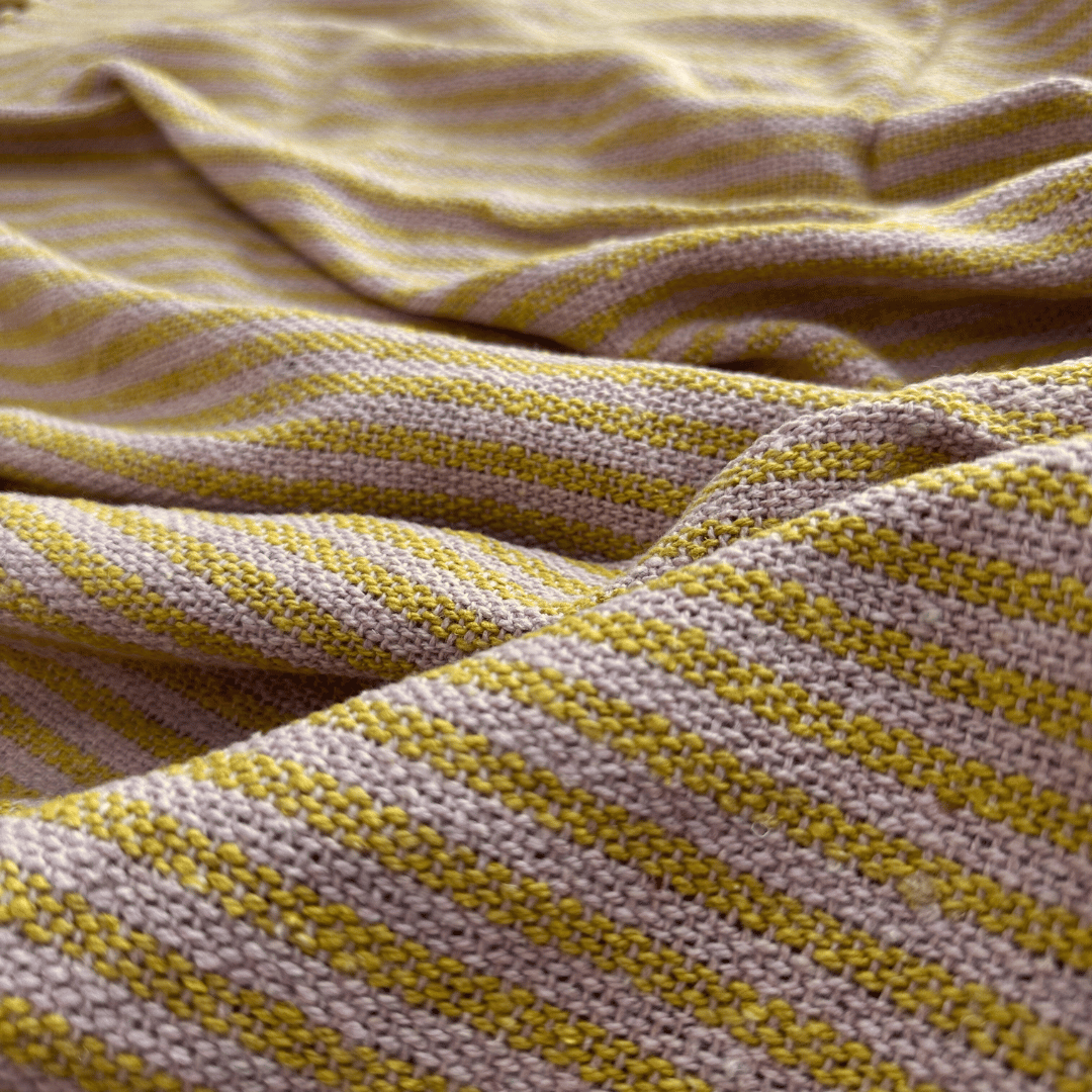 The New Cosy Spring/Summer Essential, the lovely, soft Sari Stripe Cotton Throw. Perfect addition to the end of your bed for a light layer when the nights are cool, or a cosy companion on the couch. Sourced from 100% Recycled Cotton as part of our ongoing commitment to sustainable products for Australian homes. The gorgeous Sari Stripe Cotton Throw in in Yellow and Soft Pink tones.